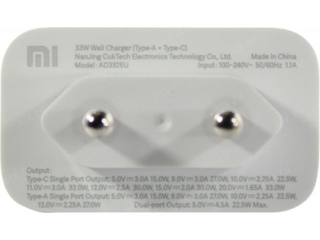 Зарядка USB-устройств от 220В Xiaomi Mi 33W Wall Charger (Type-A + Type-C) BHR4996GL USB Type A мама , USB Type C мама (33 Вт)