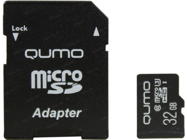 Карта памяти Qumo QM32GMICSDHC10U3 microSDXC UHS-I Class 3 (U3), Class 10 32 ГБ +microSD- SD адаптер