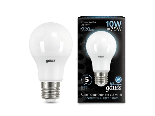 GAUSS 102502210 Лампа светодиодная LED 10 Вт 920 Лм 4100К белая Е27 A60 Black Gauss (102502210)