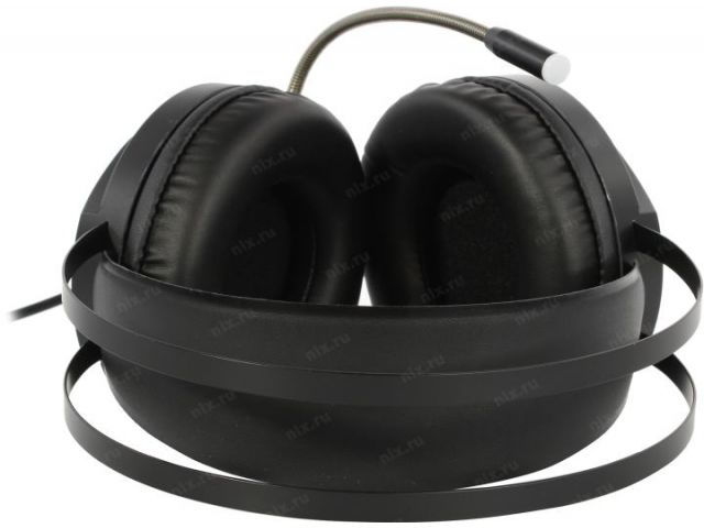 | Игровая гарнитура для компьютеров, ноутбуков с кабелем и разъемом USB. Подсветка, регулируемое оголовье, гибкий держатель микрофона, регулировка громкости на чашке наушников, длина кабеля 2,5м |