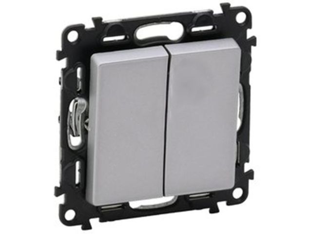 Legrand 752605 Valena LIFE Выключатель двухклавишный 10А 250В с лицевой панелью Безвинтовые зажимы Алюминий (752605)