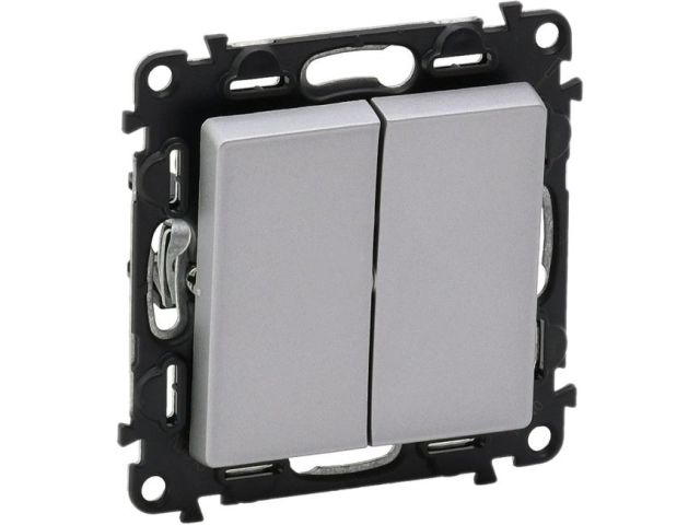 Legrand 752608 Valena LIFE Переключатель двухклавишный 10А 250В с лицевой панелью Безвинтовые зажимы Алюминий (752608)