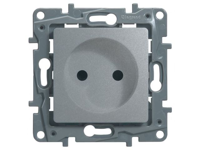 Legrand 672434 ETIKA Розетка без заземления со шторками алюминий винтовые зажимы (672434)