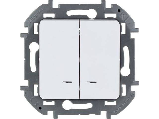Legrand Inspiria 673630 Выключатель (2клав., внутр., без рамки, с подсветкой, белый)