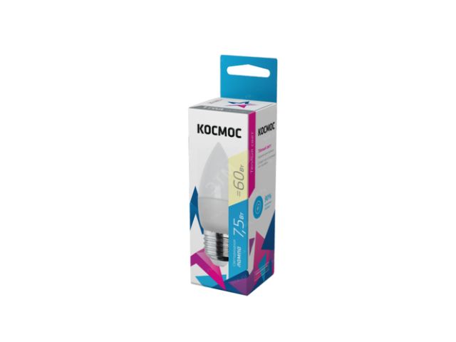 Космос LkecLED7.5wCNE2730 Лампа светодиодная LED 7.5Вт CN 220В Е27 D37х99 3000 теплый 590лм Космос (Экономик)