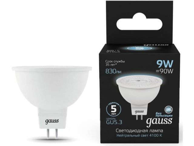 Gauss 101505209 (GU5.3, 830 люмен, 4100К, 9Вт, 150-265В)