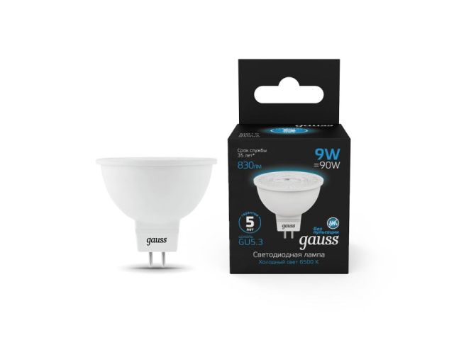 GAUSS 101505309 Лампа светодиодная LED 9 Вт 830 Лм 6500К холодная GU5.3 MR16 Black Gauss (101505309)