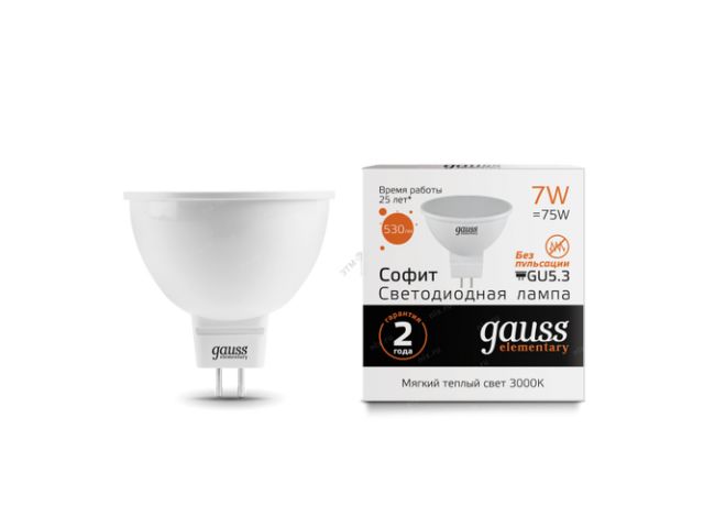 GAUSS 13517 Лампа светодиодная LED 7 Вт 530 Лм 3000К теплая GU5.3 MR16 Elementary Gauss (13517)