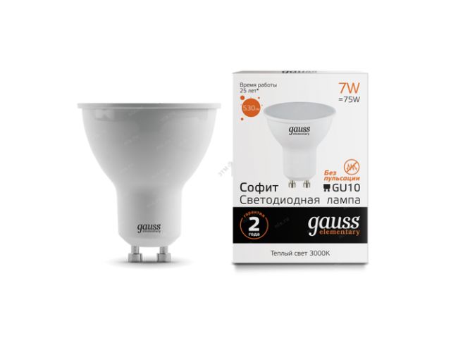 GAUSS 13617 Лампа светодиодная LED 7 Вт 530 Лм 3000К теплая GU10 MR16 Elementary Gauss (13617)