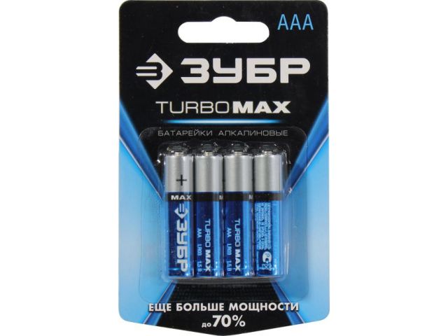 ЗУБР Turbo MAX 59203-4C Size AAA , 1.5V, щелочной (alkaline) уп. 4 шт