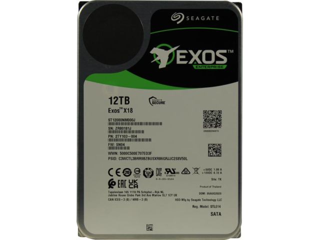 | Жесткий диск Seagate Exos X18 ST12000NM000J 12TB, 3.5 , 7200rpm, SATA 6Gb/s, 512E, 256MB (аналог ST12000NM001G) |