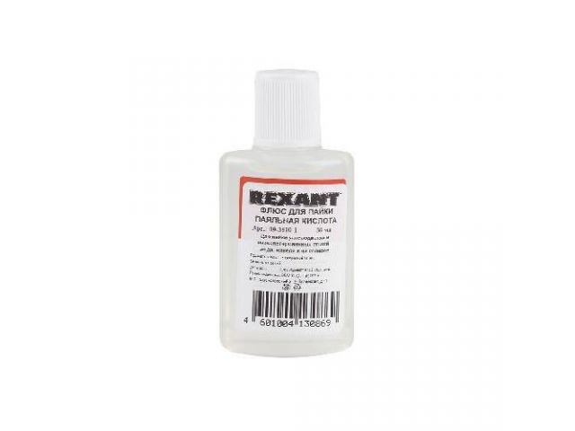 Флюс для пайки ПАЯЛЬНАЯ КИСЛОТА 30мл REXANT предназначен для удаления оксидов с поверхности под пайку, улучшения растекания жидкого припоя при пайке углеродистых и низколегированных сталей, меди, никеля и их сплавов.Данный низкотемпературный флюс применяется при пайке деталей или поверхностей припоями оловянно-свинцовой группы в температурном диапазоне 290-350 °С. После пайки требуется отмывка остатков кислоты 5% раствором кальцинированной соды.