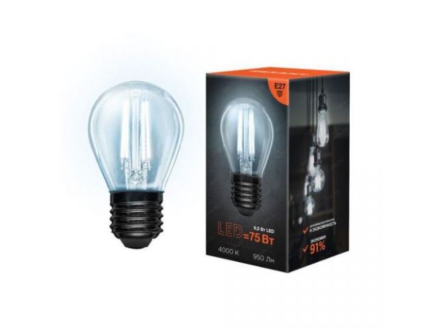 Филаментная лампа в форме шарика выступает как в качестве источника искусственного освещения, так и элемента декора. Благодаря компактным размерам лампы данного типа зачастую устанавливаются в небольшие люстры, настенные бра, маленькие настольные лампы или в другие осветительные приборы, для которых стандартная лампа слишком мала (выступает из-за плафона или не помещаться вовсе). За счет распространения света во всех направлениях потребляет меньше электроэнергии при более высокой яркости. Также лампа равномерно распределяет температуру, благодаря чему не нагревается. Обладает мощностью в 7,5Вт и цоколем Е27.