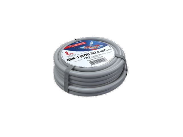 | Кабель NUM-J (NYM) выполнен из медной, однопроволочной токопроводящей жилы, круглой формы, соответствует первому или второму классу требованиям ГОСТ 31996-2012. Изоляция жилы состоит из поливинилхлоридного пластиката. Изоляция кабеля выполнена из двух материалов, первый - это пластикат экструдированной мелом наполненной безгалогеновой композиции и второй - наружная оболочка, выполненная из поливинилхлоридного пластиката. Кабель делают по немецкому стандарту VDE. Преимущественно используют аббревиатуру латинскими буквами NYM, NUM или на кириллице - кабель НУМ, НЮМ.; Применение:; Предназначен для передачи и распределения электрической энергии в стационарных установках на переменное напряжение до 0,66 кВ частотой 50 Гц, в том числе в электроустановках зданий и сооружений для безопасного применения электрооборудования класса защиты 1 по электробезопасности. Кабель может применяться для прокладки силовых и осветительных сетей.; Расшифровка обозначения кабеля силового NYM (NUM):; N - Normenleitung, что значит стандарт VDE; Y - Kunststoffisolierung der Adern - изоляция жил из пластиката (ПВХ); M - Mantelleitung fur mittlere mechanische Beanspruchung - оболочка кабеля рассчитана на средние деформации, иными словами, этот кабель пригоден только для монтажных работ. К примеру, сделать шнур для удлинителя из него нельзя. J - указывает на наличие желто-зеленого нулевого провода.; Технические характеристики:; Диапазон температур эксплуатации: -30...+50 °С; Относительная влажность воздуха при температуре до +35 °С: до 98 %; Прокладка и монтаж кабелей без предварительного подогрева производится при температуре не ниже: -15 °С; Минимальный радиус изгиба при прокладке: кабелей одножильных - 10 наружных диаметров; Длительно допустимая температура нагрева жил кабелей при эксплуатации: +70 °С; Гарантийный срок эксплуатации: 5 лет (с даты ввода кабелей в эксплуатацию, но не позднее 6 месяцев с даты изготовления) |