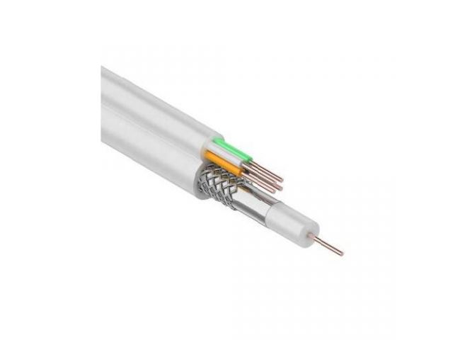 Для сложных систем видеонаблюдения, где требуются высококлассная передача сигнала и надежность эксплуатации камеры, используют особый - комбинированный кабель, сочетающий в себе коаксиальный кабель для передачи видеосигнала, и жилы питания, обеспечивающие энергоснабжение камеры. Коаксиальная часть кабеля (аналог 3c-2v) состоит из центрального медного проводника, изолированного полиэтиленовым диэлектиком, и медного экрана, наложенного на сердечник, который обеспечивают электрическую непрерывность проводника. Дополнительные 4 жилы питания представляют собой медные проводники диаметром 0,5 мм, заключенные в изоляцию, окрашенную в разные цвета. Комбинированный кабель видеонаблюдения +4 жилы 100м белый REXANT имеет внешнюю оболочку из ПВХ белого цвета.