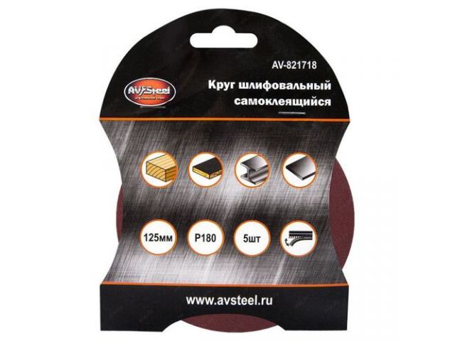 AVSteel AV-821718 Круг шлифовальный (D125мм, P180, 5шт.)