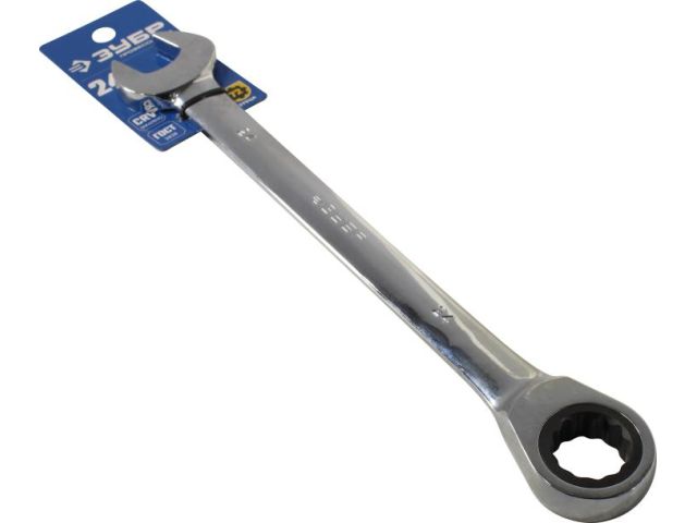 ЗУБР 27074-24 Комбинированный гаечный ключ трещоточный шарнирный (24мм)