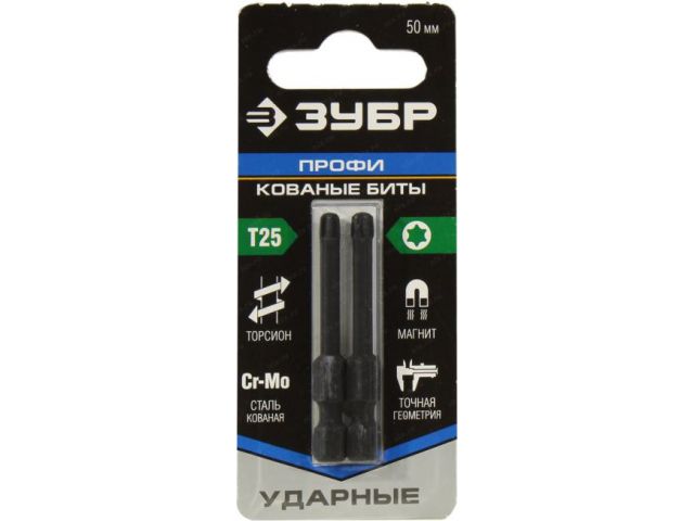 ЗУБР Профи 26025-25-50-S2 Кованые биты ударные (2 шт, T25, 50 мм)