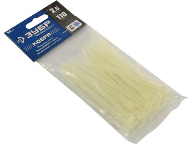 ЗУБР Профессионал 30930-25-110 Кабельные стяжки нейлоновые Кобра , белые, 110 мм, уп-ка 50 шт