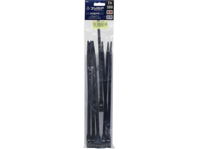 ЗУБР Профессионал 30935-76-280 Кабельные стяжки нейлоновые Кобра , чёрные, 280 мм, уп-ка 10 шт