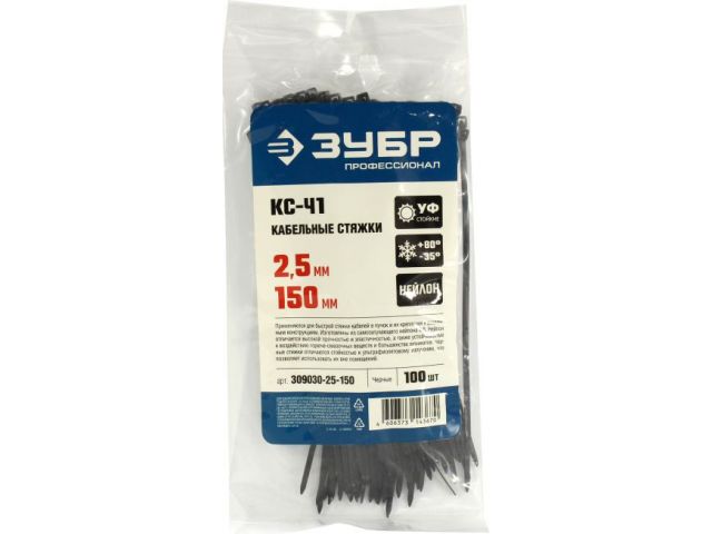 ЗУБР Профессионал 309030-25-150 Кабельные стяжки чёрные КС-Ч1, 150 мм, уп-ка 100 шт