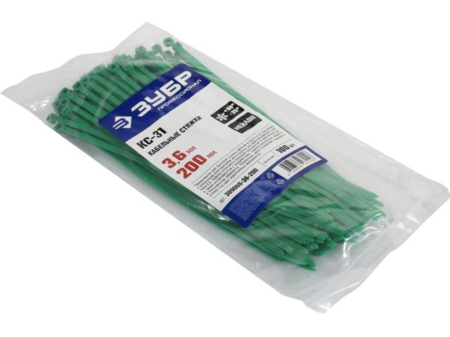 ЗУБР Профессионал 309060-36-200 Кабельные стяжки зелёные КС-З1, 200 мм, уп-ка 100 шт