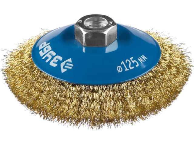 Зубр 35267-125_z02 ЗУБР ПРОФЕССИОНАЛ . Щетка коническая для УШМ, витая латун стальная проволока 0,3мм, 125ммхМ14
