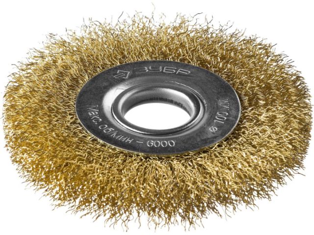 Зубр 35187-100_z01 ЗУБР ПРОФЕССИОНАЛ . Щетка диск для УШМ, витая стальная латунированная проволока 0,3мм, 100х22мм