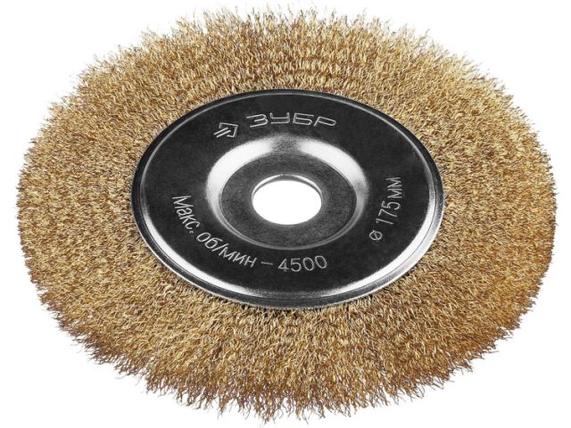 Зубр 35187-175_z01 ЗУБР ПРОФЕССИОНАЛ . Щетка диск для УШМ, витая стальная латунированная проволока 0,3мм, 175х22мм