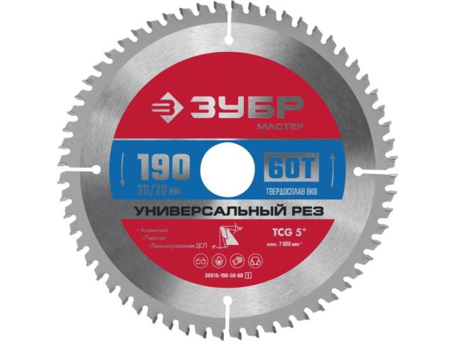 Зубр 36916-190-30-60 ЗУБР Мультирез 190 x 30мм 60Т, диск пильный по алюминию