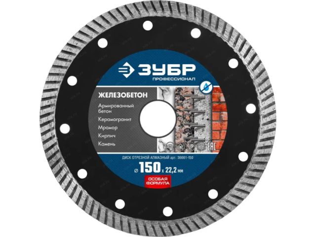 Зубр 36661-150 ЖЕЛЕЗОБЕТОН 150 мм, диск алмазный отрезной сегментир по жб,армированному бетону, ЗУБР Профессионал
