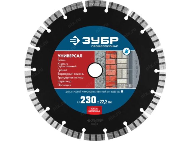Зубр 36650-230_z02 УНИВЕРСАЛ 230 мм, диск алмазный отрезной по бетону, кирпичу, граниту, ЗУБР Профессионал
