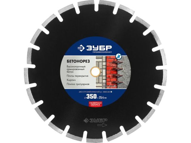 Зубр 36665-350_z01 БЕТОНОРЕЗ 350 мм, диск алмазный отрезной по бетону и камню, ЗУБР Профессионал