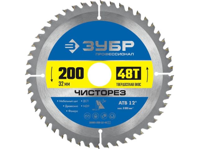 Зубр 36905-200-32-48 ЗУБР Чисторез 200 x 32мм 48Т, диск пильный по дереву