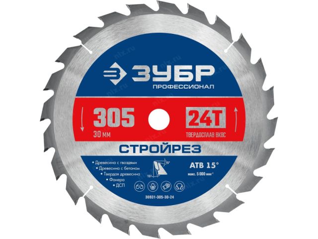 Зубр 36931-305-30-24 ЗУБР Стройрез 305х30мм 24Т, диск пильный по строительной древесине