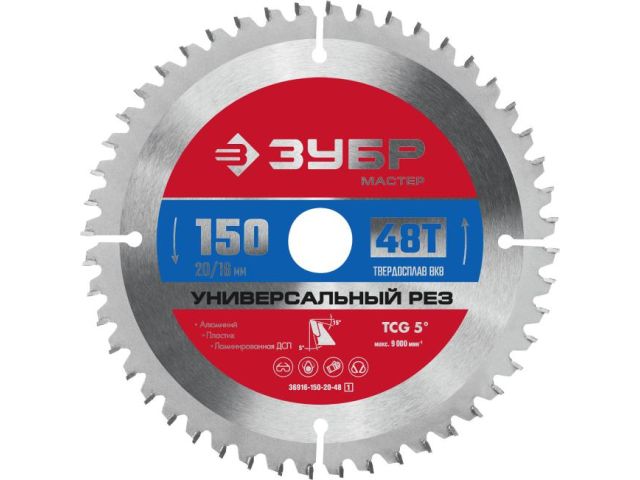 Зубр 36916-150-20-48 ЗУБР Мультирез 150 x 20мм 48T, диск пильный по алюминию