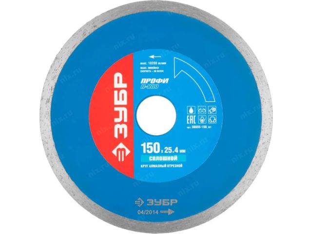 Зубр 36655-150_z01 Т-800 Сплошной 150 мм,диск алмаз отрезной сплошной по керамограну,мрамору,плитке,ЗУБР Профессионал