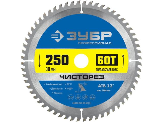 Зубр 36905-250-30-60 ЗУБР Чисторез 250 x 30мм 60Т, диск пильный по дереву