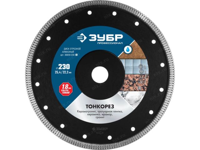 Зубр 36659-230_z01 ТОНКОРЕЗ 230 мм, диск алмазный отрезной сплошной ультратонкий, ЗУБР Профессионал