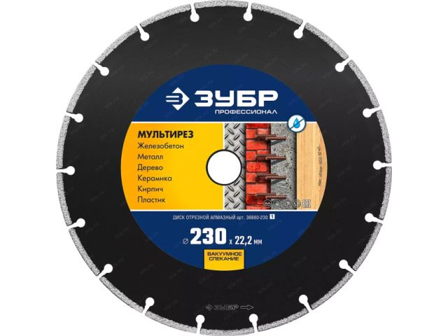 Зубр 36660-230_z01 МУЛЬТИРЕЗ 230 мм, диск алмазный отрезной универсальный, ЗУБР Профессионал