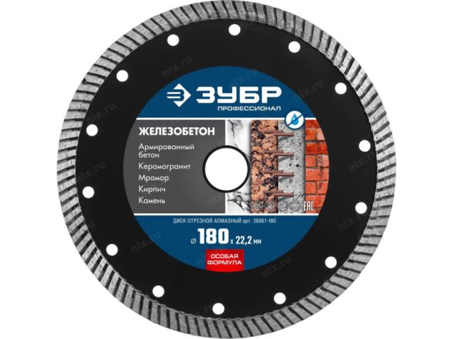 Зубр 36661-180 ЖЕЛЕЗОБЕТОН 180 мм, диск алмазный отрезной сегментир по жб армированному бетону, ЗУБР Профессионал