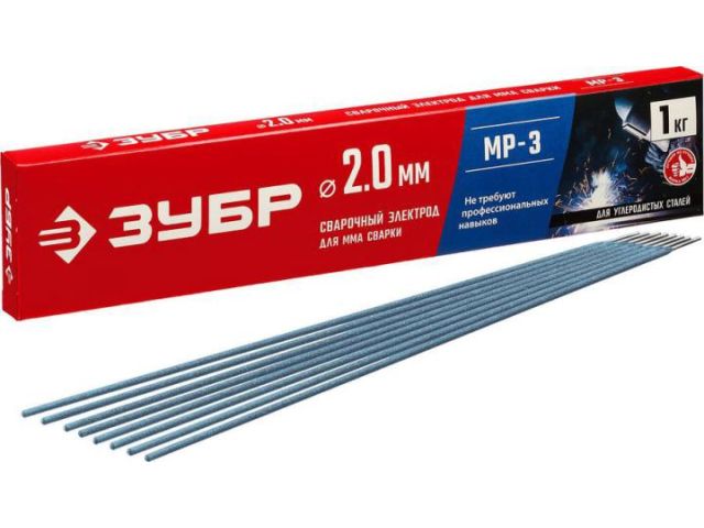 Зубр 40011-2.0 ЗУБР электрод сварочный МР-3 с рутиловым покрытием, d 2,0 х 300 мм, 1 кг в коробке.