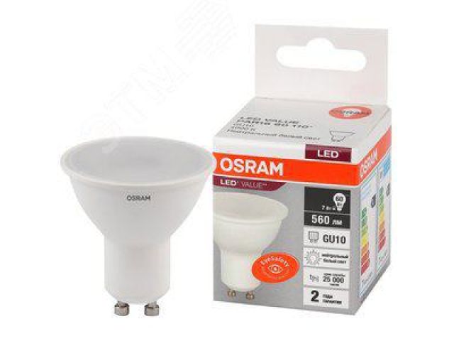 LEDVANCE 4058075581586 Лампа светодиодная LED 7 Вт GU10 4000К 560Лм спот 220 В (замена 60Вт) OSRAM (4058075581586)