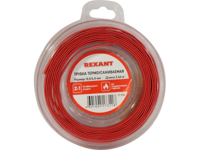 Rexant 29-0044 Термоусаживаемая трубка (8.0/4.0мм, 2.44м, красная)