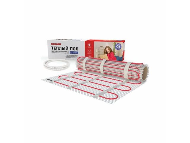 51-0526-2 Теплый пол,нагревательный мат REXANT Classic RNX-14-2100,двухжильный,с экраном,14 м2,0.5х28 м,2100 Вт