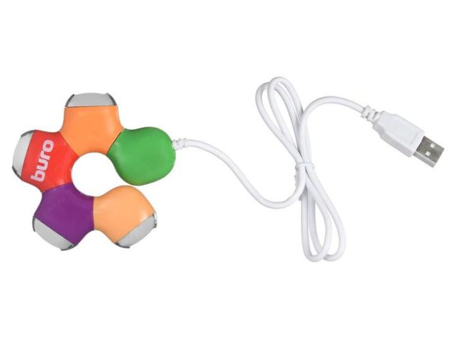 Разветвитель USB 2.0 Buro BU-HUB4-0.5-U2.0-Flower 4порт. разноцветный