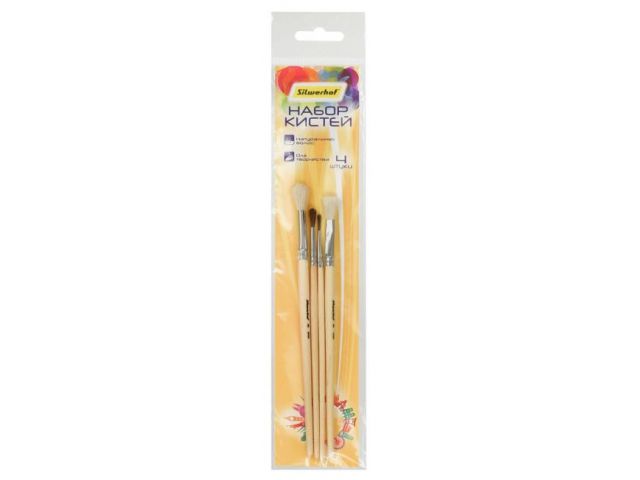 Набор кистей Silwerhof 980078 Солнечная коллекция (наб.4шт) пони круглая №1,2/коза круглая №5/коза плоская №6