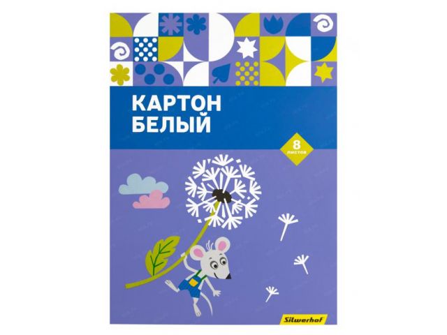 Картон белый Silwerhof 8л. A4 Мышка 230г/м2 1диз. обл.мел.картон папка