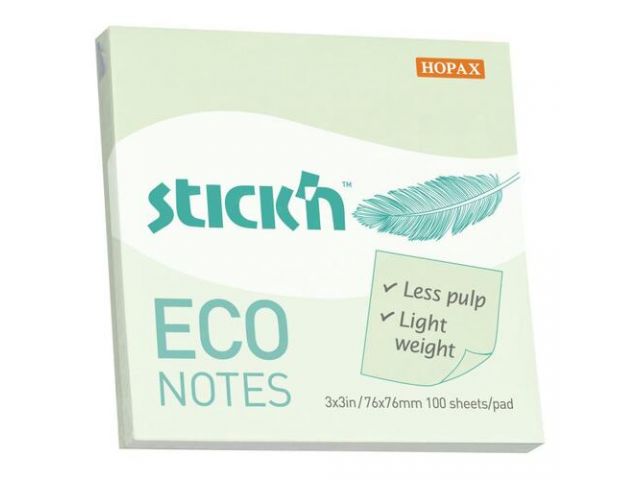Блок самоклеящийся бумажный Stick`n ECO 21748 76x76мм 100лист. 60г/м2 пастель зеленый