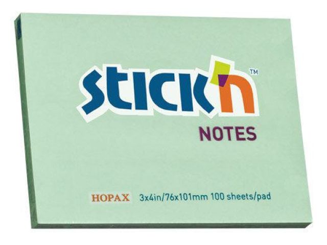 Блок самоклеящийся бумажный Stick`n 21153 76x101мм 100лист. 70г/м2 пастель зеленый